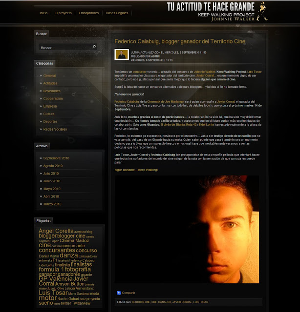 …La cinematk de Joe Marlango no para de darme alegrías. Estoy tremendamente feliz, emocionado y agradecido porque he ganado el concurso que Johnnie Walker ha organizado para cubrir la master class que Luis Tosar impartirá a Javier Corral el próximo martes 14 de septiembre. Así que me iré a Madrid para contaos todo lo que suceda en ese encuentro.